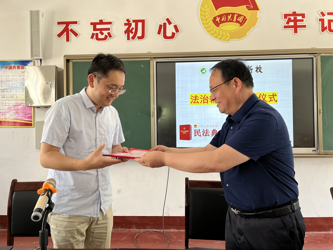 为全面贯彻落实习近平总书记关于民法典的重要讲话精神,推动“民法典宣传月”活动走深走实,进一步加强我校青年学生法治教育工作,持续掀起民法典宣传学习热潮,让民法典走到青年学生身边、走进青年学生心里,根据《关于开展“民法典宣传月”暨“美好生活法典相伴”主题普法宣传活动的通知》(枣普法办〔2022〕3号)要求,结合我校实际,6月1日上午,滕州二中新校举行了法治辅导员聘任仪式暨“美好生活 法典相伴”普法讲座。