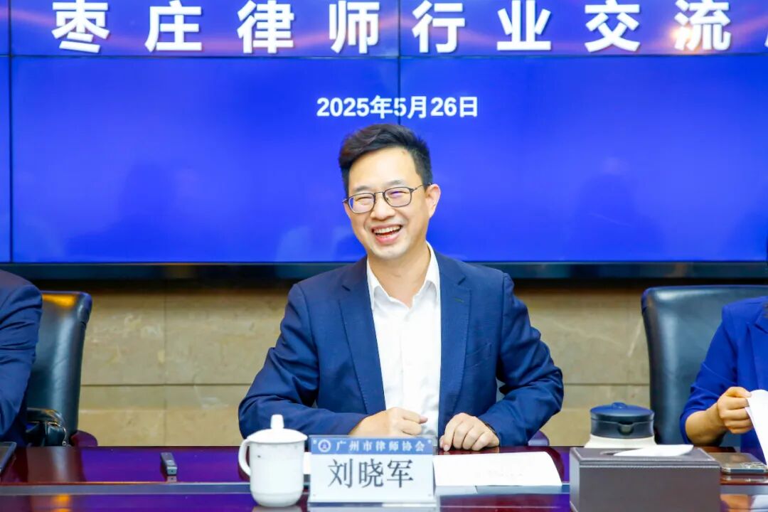 朱士刚会长对广州市律师协会的热情接待表示衷心感谢,并简要介绍了枣庄律师行业整体发展情况。他表示,广州律协在行业党建、律所规范化建设、青年律师培养等方面的先进经验和成熟做法值得深入学习,通过此次座谈交流,拓宽了新视野、启迪了新思路。希望未来能够与广州律协建立更加紧密的联系,实现信息互通、资源共享,携手共促两地律师事业繁荣发展。