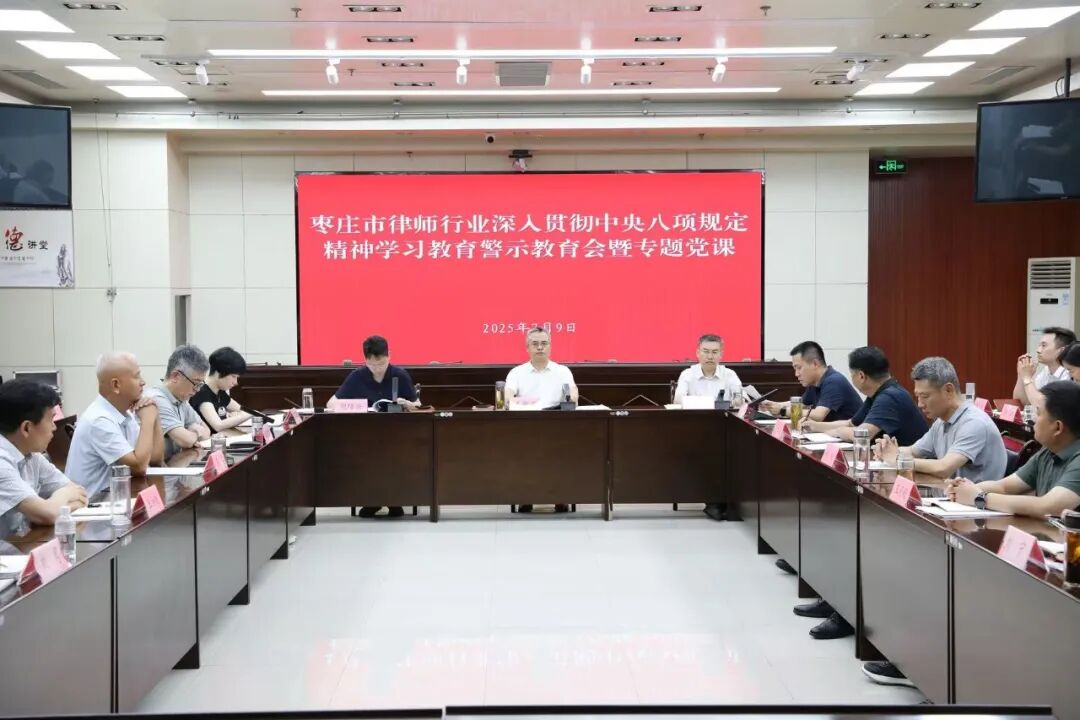 7月9日,枣庄市律师行业召开深入贯彻中央八项规定精神学习教育警示教育会暨专题党课,市司法局党组成员、政治部主任、市律师行业党委书记王新宽出席会议并讲授专题党课。